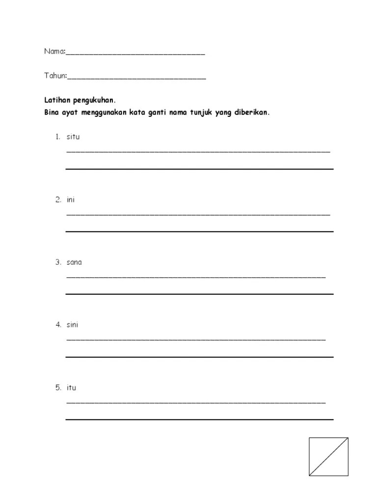 Latihan Kata Ganti Nama Tahun 1 / Latihan Kata Ganti Nama Tunjuk Dan Tempat Latihan Nama Bahasa Melayu